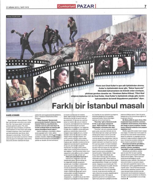 Selma Köksal’ın senaryosunu yazdığı, yönettiği ve aynı zamanda oynadığı film, tek kopyayla Beyoğlu Atlas Sineması’nda izleyiciyle buluştu. Film 26 Nisan’a kadar izlenebilecek. Onat Kutlar’ın Bahar İsyancıdır isimli öyküsünden adını alan film, geçtiğimiz cuma günü tek …