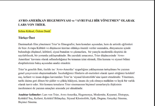 Danimarkalı film yönetmeni Trier’in filmografisi, hem konuları açısından, hem de artistik eğilimleri ile bize Avrupa Kültürü ve düşüncesi üzerine oldukça önemli veriler sunmakta, dünyamızın içinde bulunduğu düşünsel, kültürel, siyasi bunalım ve çıkmazlara, bir yanıyla modernlik …